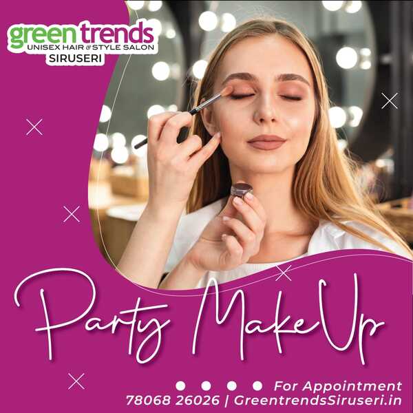 A good makeup can hide your blemishes and highlight your features. Grabbing attention in a party is not a difficult task any more. Get your party makeup done at greentrends Siruseri salon and rock the next party you attend. Walkin or Call us at 7806826026 to book an appointment with us.