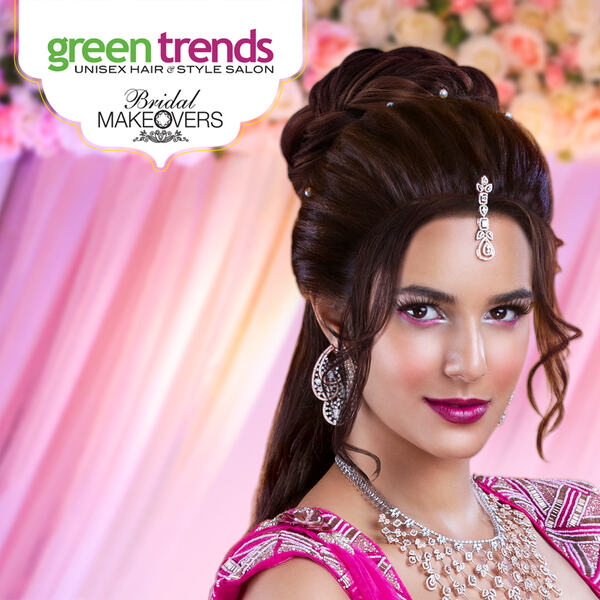Green Trends' Bridal Makeover is here to make your special day memorable. It goes without saying that you'll be the belle of the ball with this mix of unconventional colours and modern elements. The blushing bride is set to steal the show with the pink ensemble complemented with pink and silver dual tone eye makeup and braided top knot. Walk-in to green trends Siruseri or call us to schedule your appointment. Landmark: Above Cafe Coffee Day, Opposite Thottam Nursery. Phone : 7806826026.