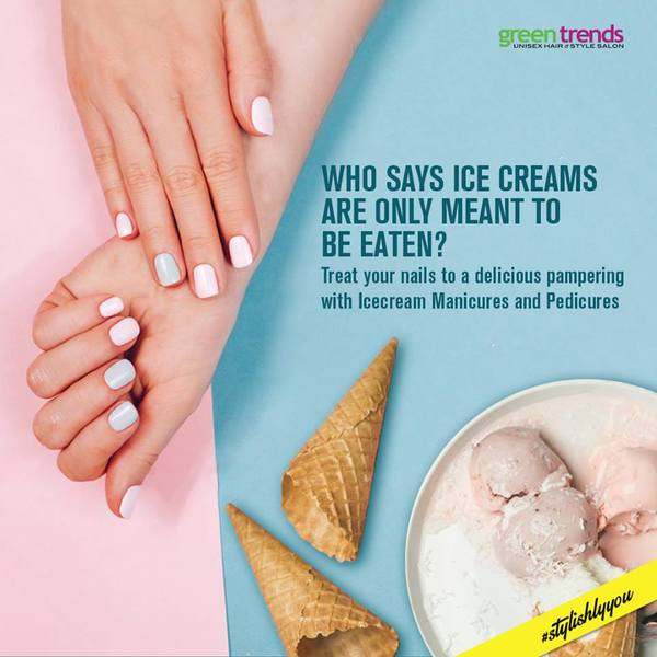 Green Trends Siruseri offers premium Pedicure & Manicure. Ice Cream Pedicure - A guilt-free indulgence awaits you. A flavorful and moisturising scoop of luxury can now be a part of your manicures and pedicures. Green Trends - Unisex Hair & Style Salon Address: S. No. 91/18A, 1st Floor, Old Mahabalipuram Rd, Above Kovai Pazhamudhir Nilayam & Cafe Coffee Day, Egattur, Siruseri, Chennai, Tamil Nadu 603103 Phone: 078068 26026 Ladies Beauty Salon in Siruseri, Pedicure in Siruseri, Manicure in Siruseri, Nail Spa in Siruseri, visit Green Trends Siruseri.