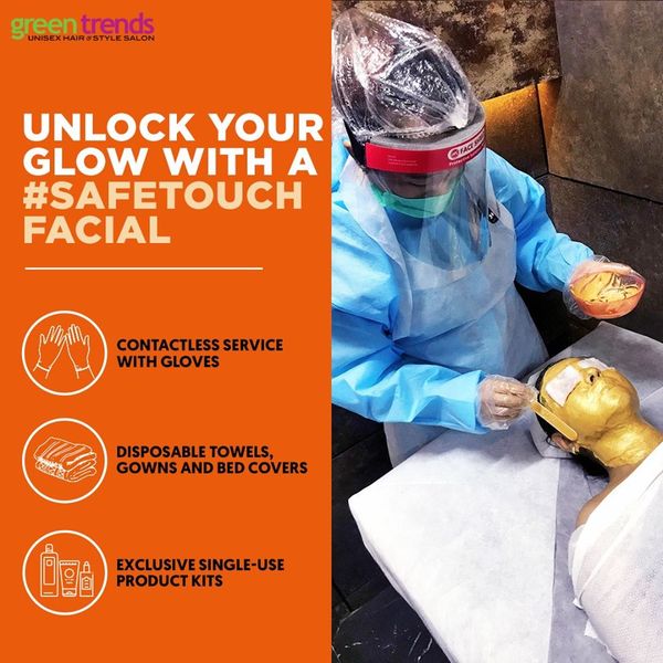 Green Trends Siruseri offers Safe Facial Service. Wondering if salons are safe to visit? green trends offers Safe Touch Salon Services by usage of disposable towels, aprons and gowns, exclusive single-use product kits, 100% sterilized tools and services delivered by temperature verified stylists to ensure Safety At Every Touch. Call greentrends Siruseri for appointment.