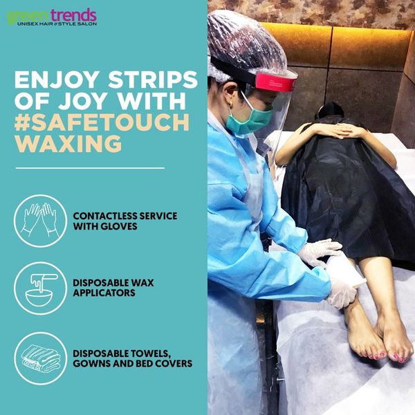 Green Trends Siruseri offers Safe Waxing Service. Wondering if salons are safe to visit? green trends offers Safe Touch Salon Services by usage of disposable towels, aprons and gowns, exclusive single-use product kits, 100% sterilized tools and services delivered by temperature verified stylists to ensure Safety At Every Touch. Call greentrends Siruseri for appointment.