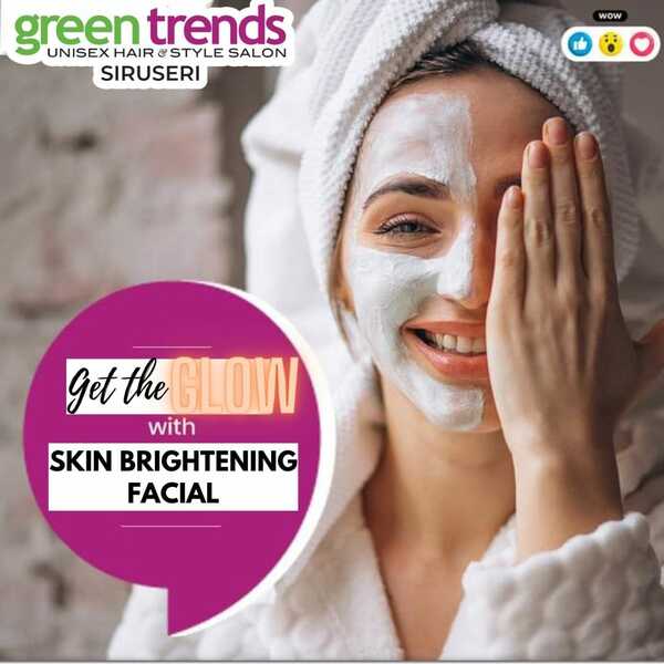 Green Trends Skin Brightening Facial rejuvenates deeper layers of the skin. It lightens freckles, pigmentation, dark spots and reduces melanin production. It also brightens skin tone, reduces dullness and other damage due to the sun, and promotes an even-toned complexion. Walkin to green trends Siruseri or Call us at 7806826026 to book an appointment with us. Landmark: Above Cafe Coffee Day, Opposite Thottam Nursery, Siruseri.