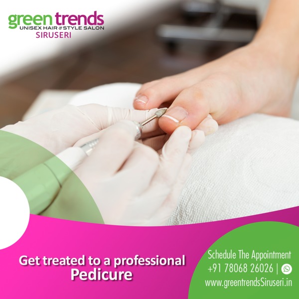 Pedicures may feel like a luxury, but having a pedicure every now and then is actually very important for the health of your feet. Not only will it help you look well-groomed, but it is good for you too. Benefits of Pedicure: Reduce your chance of infection Keep calluses under control Promote blood circulation Improve joint health Relaxation Make sure you schedule an appointment every 4 weeks to have a healthy nails. Get treated to a professional Pedicure experience today. Step into Green Trends Siruseri or Call us at 7806826026 to schedule your appointment today. Landmark: Above Cafe Coffee Day & Kovai Pazhamudhir Nilayam.